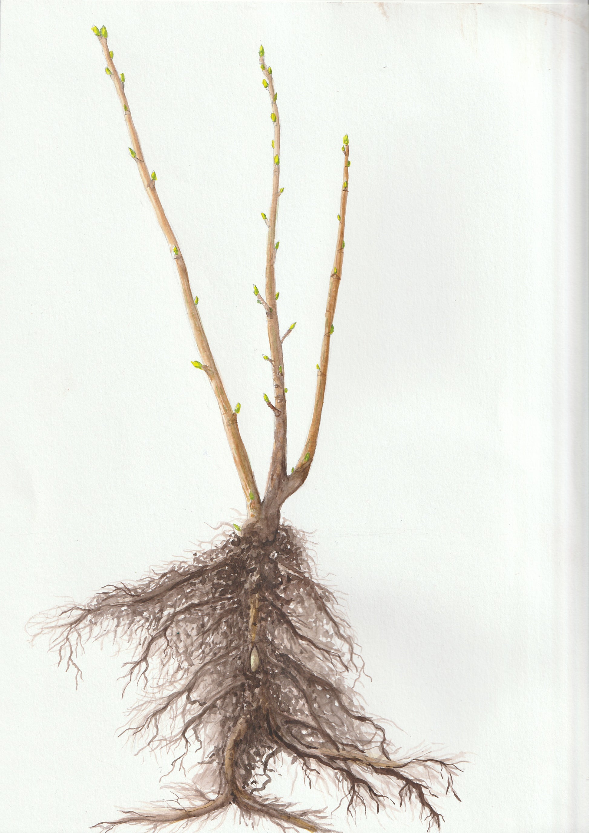 Plant de 1 an en Racines Nues, 2 à 3 branches taillées à 25 cm.